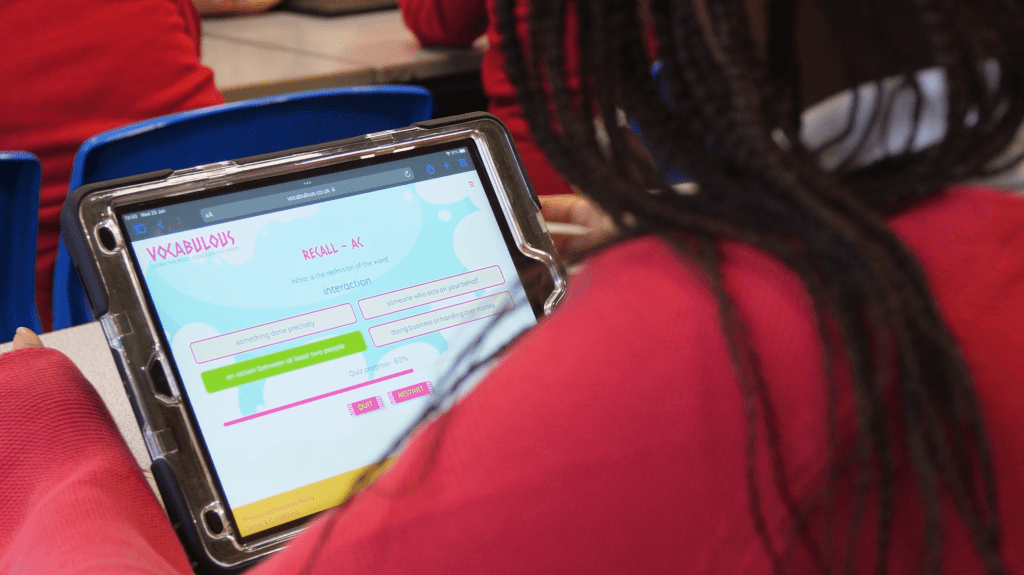 Sam Rennison, a Year 6 teacher at Parklands, said of Vocabulous: “I just think it’s been an amazing tool. It’s introduced them to a whole new range of parts of words that they haven’t come across before.